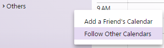 On the left, mouse over the Others link to import 'other' calendars. Click the settings cog that appears.