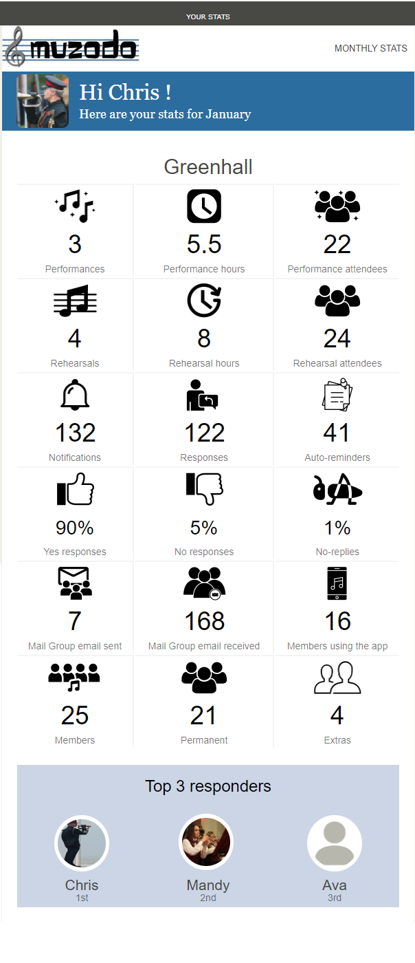 Below is an example of an email that you, as an administrator can receive, either weekly or monthly: