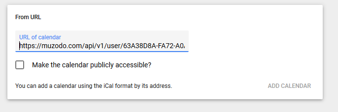 Copy and paste your Muzodo calendar URL above and click 'Add Calendar'