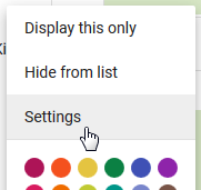 On the left, mouse over the Others link to import 'other' calendars. Click the settings cog that appears.