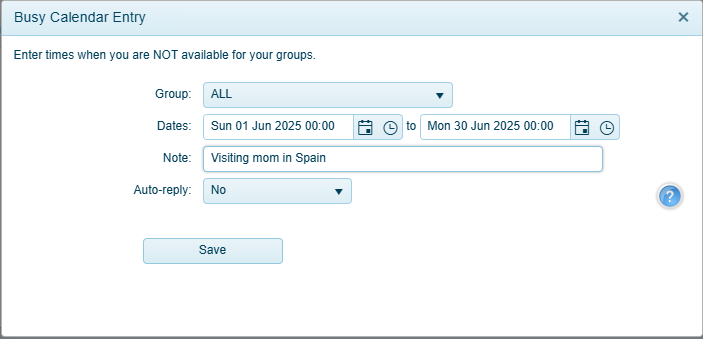 Going away or busy? Use the Busy Calendar feature to let your group administrators know that you're not available.
