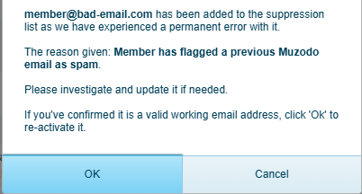 Occasionally, we see the case where someone inadvertently reports a Muzodo email as spam. If they do this, they're added to the suppression list.